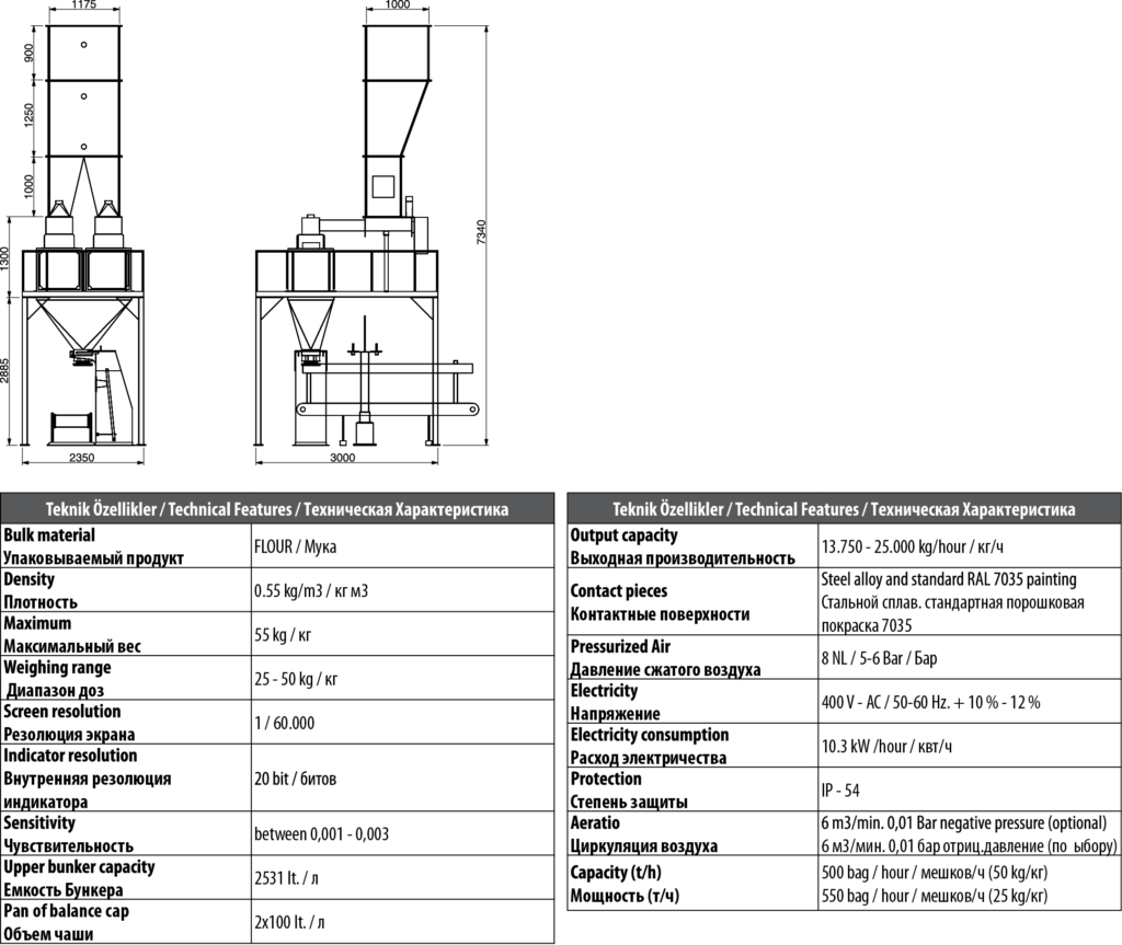 Double Weighing Scale Single Station Flour Bagging